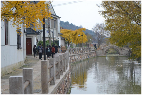 第二天,总经理带队,我们畅游东村古镇。斑驳的墙垣,带着岁月的痕迹;古朴的石阶,铺满金黄的银杏叶;潺潺的涓流,在古桥边延绵。游走在古镇的街头,放下繁忙的工作,尽情享受苏州古镇温婉的风情。